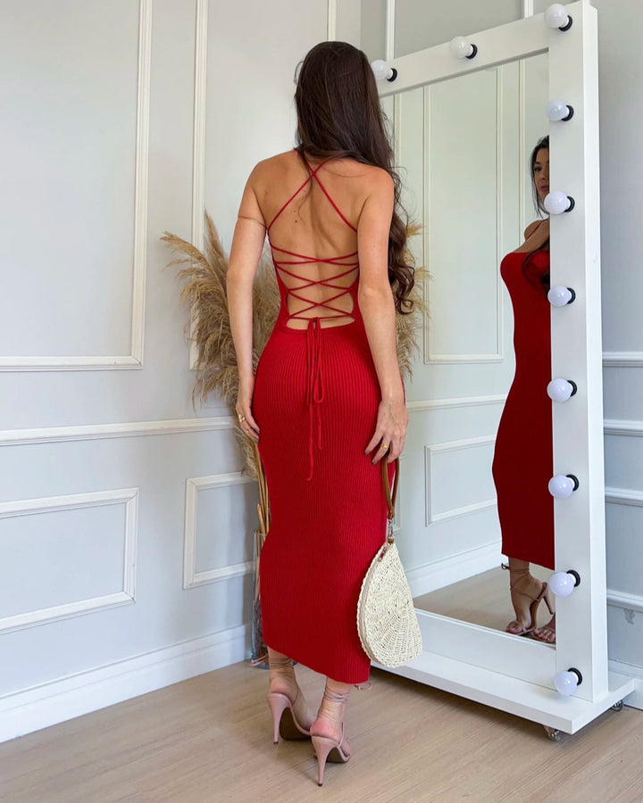 【Daring Backless Design】: A deep V-shaped open back creates a show-stopping look, accentuated by a delicate tie closure at the nape for adjustable fit and security.