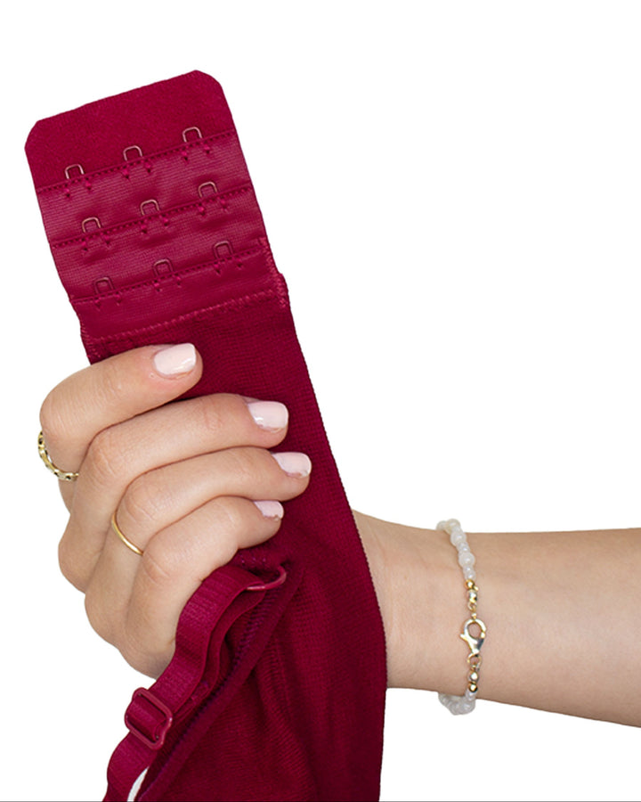 Tip: If you would like to add more room in the band without increasing cup size for extra comfort. you may pair this bra with an extender. The Bamboo Padded Bra has a different hook closure depending on the band and cup size.