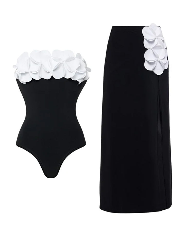 Bandeau 3D Flower One Piece Swimsuit And Skirt