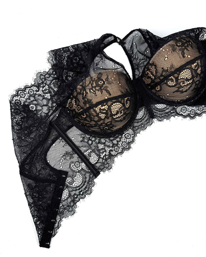 Black Sexy See-Through Lace Button Bra Top