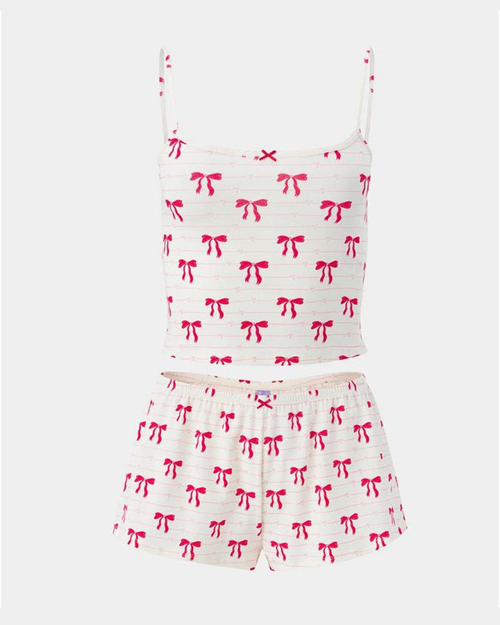 Relax in festive comfort with this cozy Christmas loungewear set. Featuring a soft stretch vest and matching shorts adorned with holiday-themed prints, this set is perfect for unwinding at home during the holiday season. Whether enjoying a quiet evening or festive gatherings, it blends seasonal cheer with everyday ease.