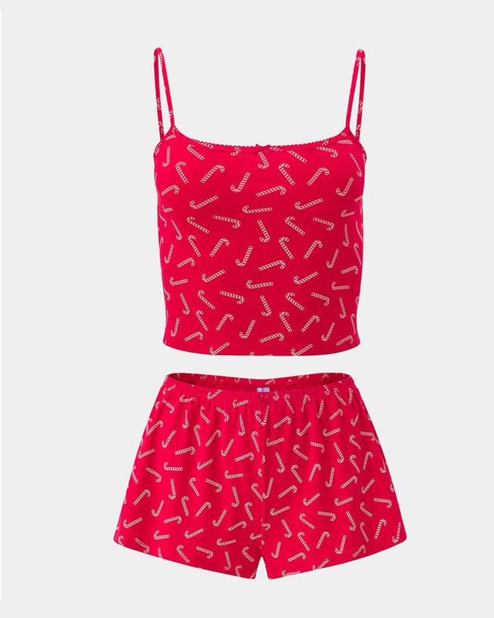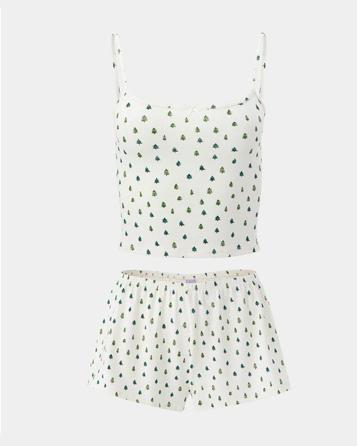Christmas Comfortable Casual Stretch Vest Shorts Loungewear Set