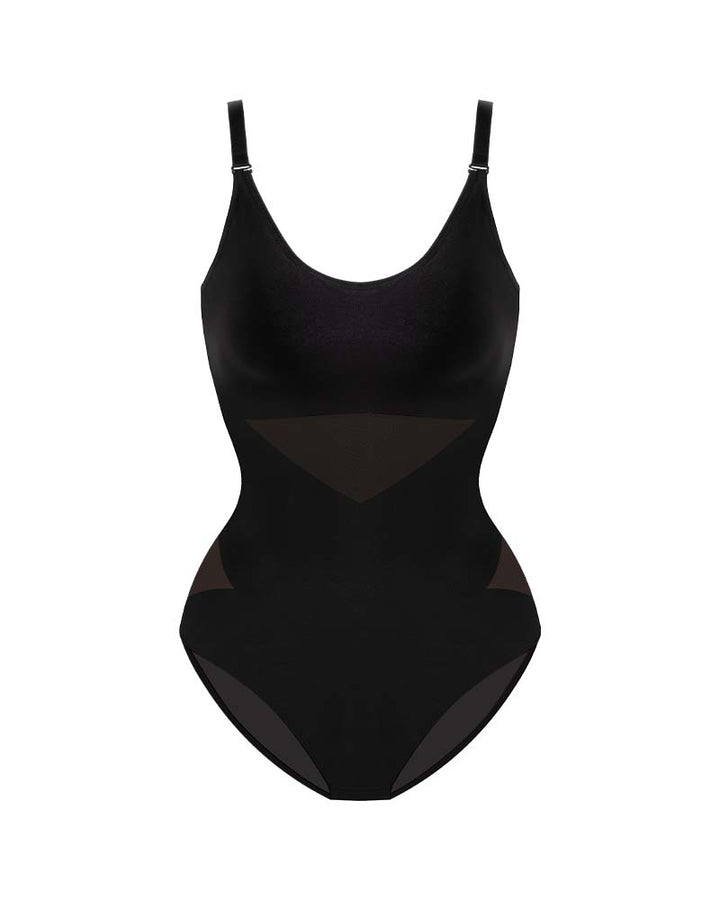 Criss-Cross Mesh Panel Sculpting Bodysuit