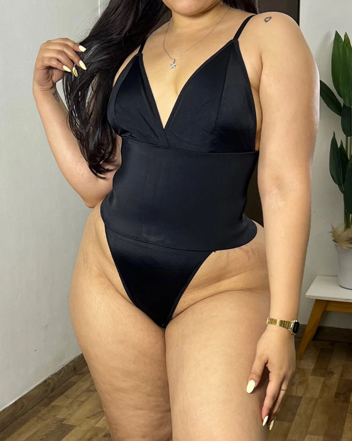 Deep V-neck Tummy Control and Back Waist Hook-eye Bodysuit