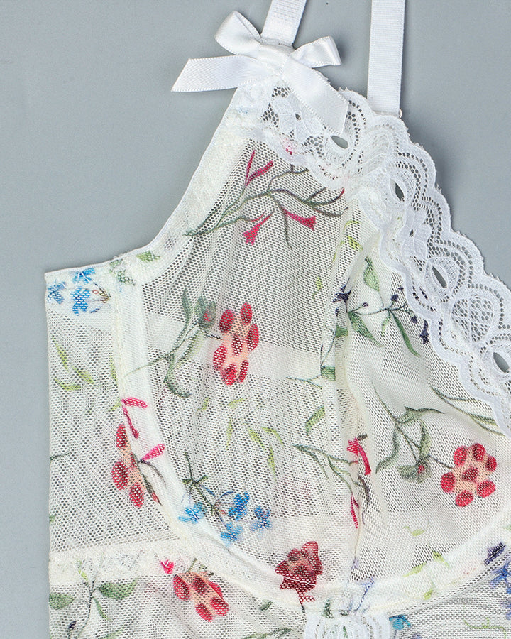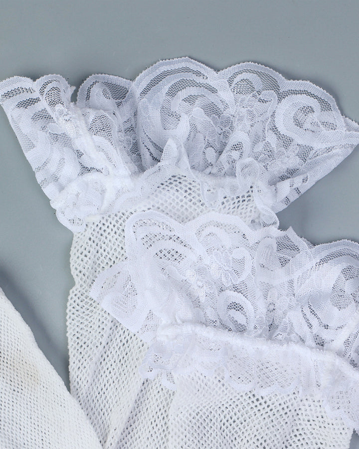 Floral Lace Stitching Stretch Mesh Sexy Pajamas and Stockings Set