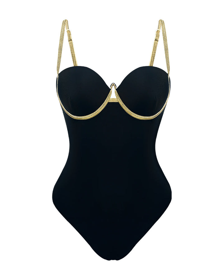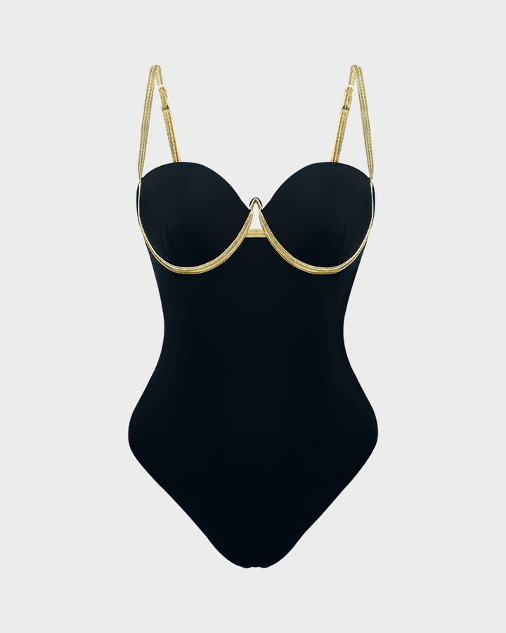 Gold-Trimmed Built-In-Bra One-Piece Swimsuit