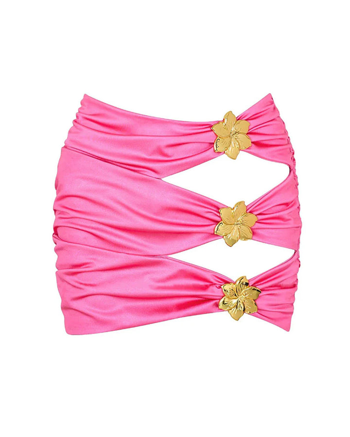 Halterneck Cut Out Swimsuit and Skirt With Flower Hardware Details