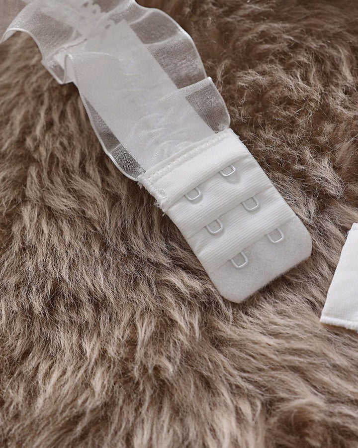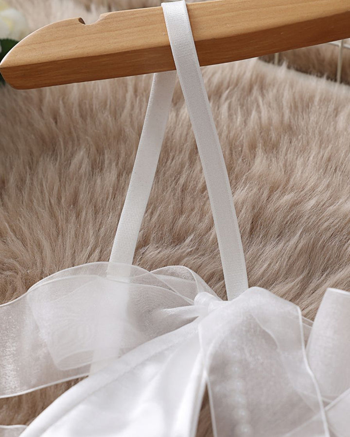 Lace Mesh Bow Tie Pearl Decoration Lingerie Set