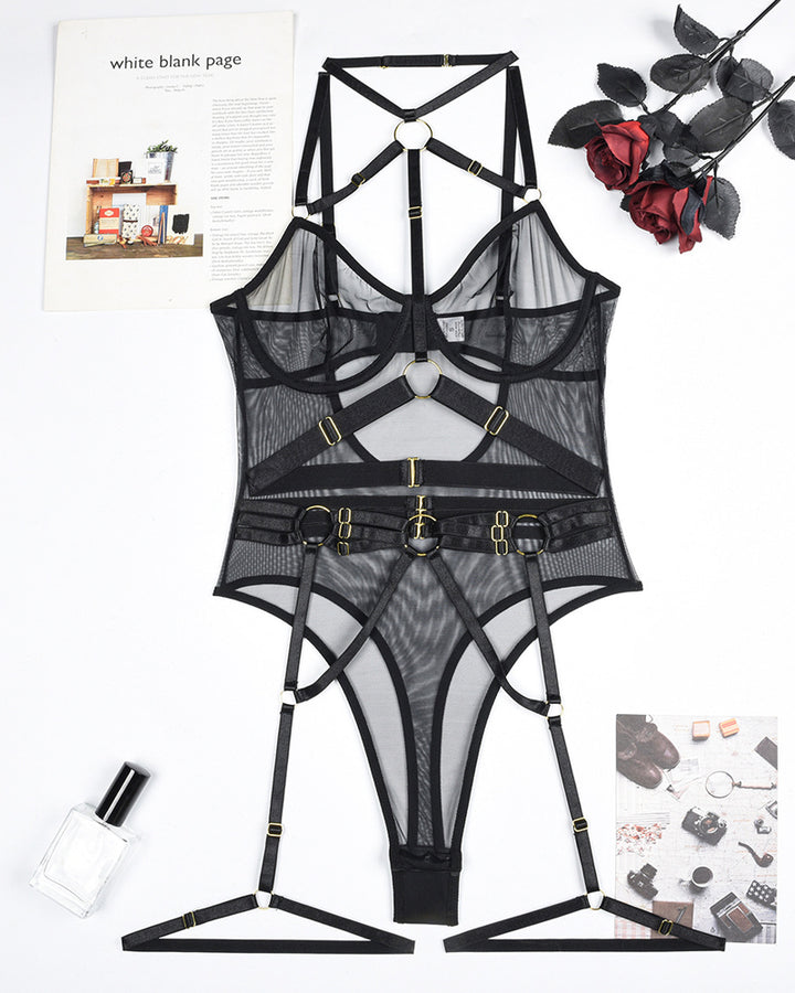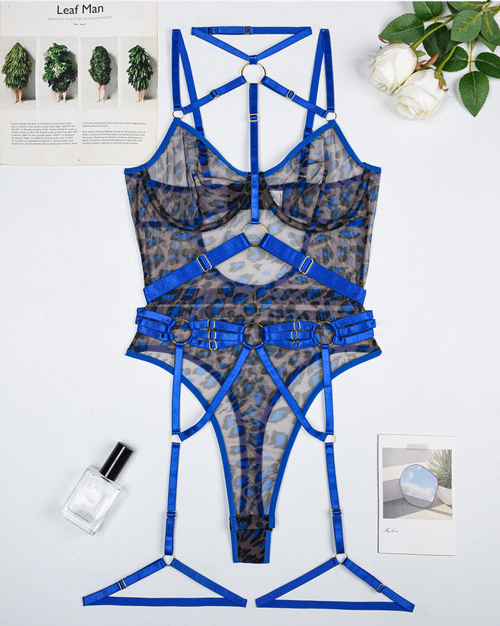 Leopard Print See-Through Mesh Bondage Sexy Underwire Bodysuit