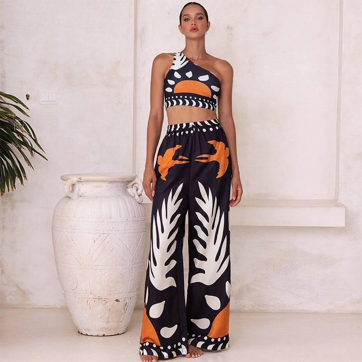 One Shoulder High Waist Bikini Swimsuit and Pants or Skirt