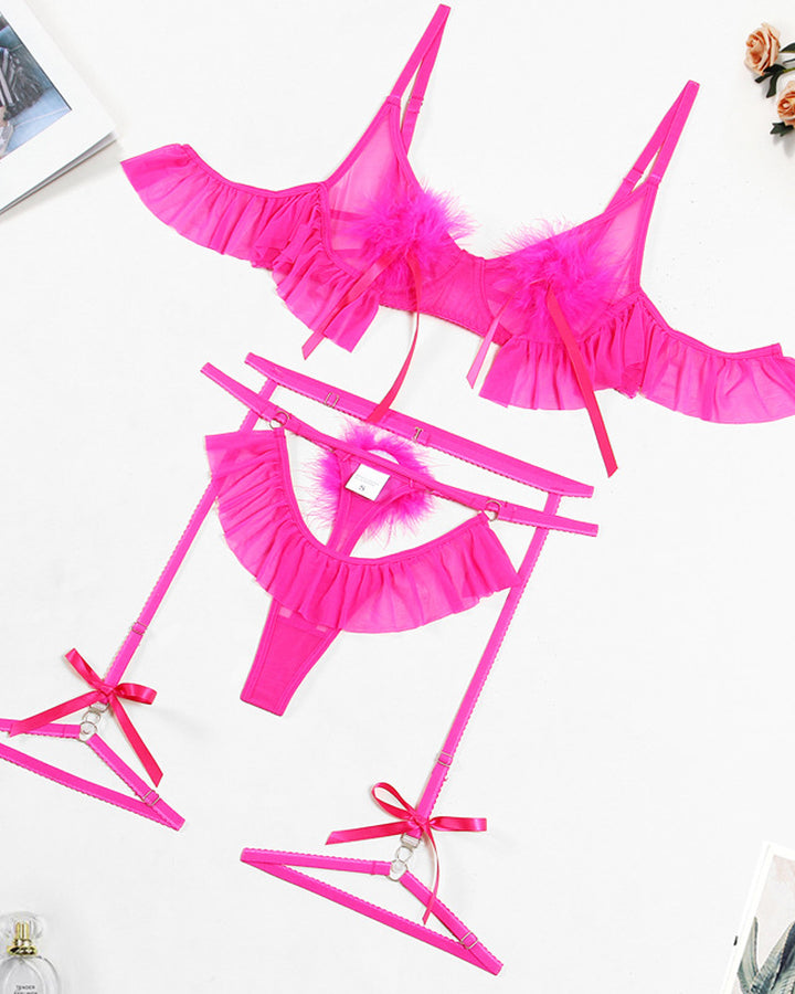Indulge in playful elegance with this captivating lingerie set that blends texture and temptation. Featuring a soft plush ball-pleated skirt paired with delicate see-through mesh, this ensemble creates a striking contrast of innocence and allure. Perfect for romantic moments or confident self-expression, it’s designed to make you feel irresistibly feminine and empowered.