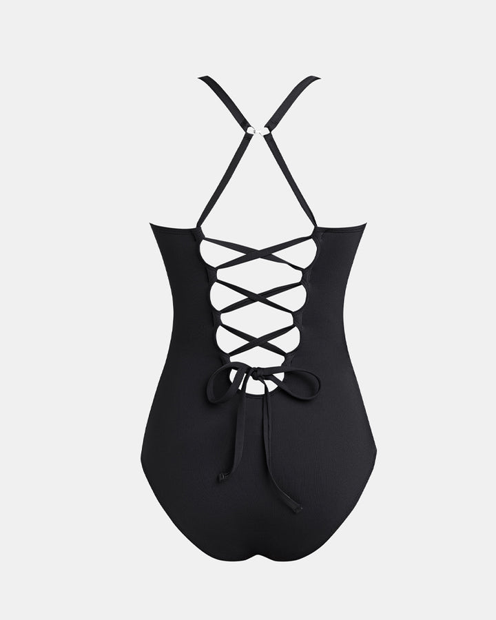 Sexy Deep V Low-Cut Slimming and Shaping Lace-Up Back Tummy-Control Adjustable Shoulder Straps One-Piece Swimsuit