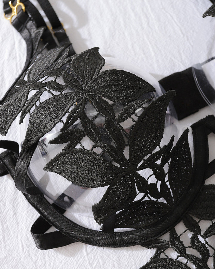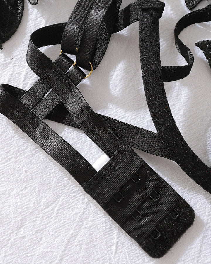 Sexy Floral Embroidery Hollow Heavy Craft Chain Bracelet Shaping Bodysuit Set