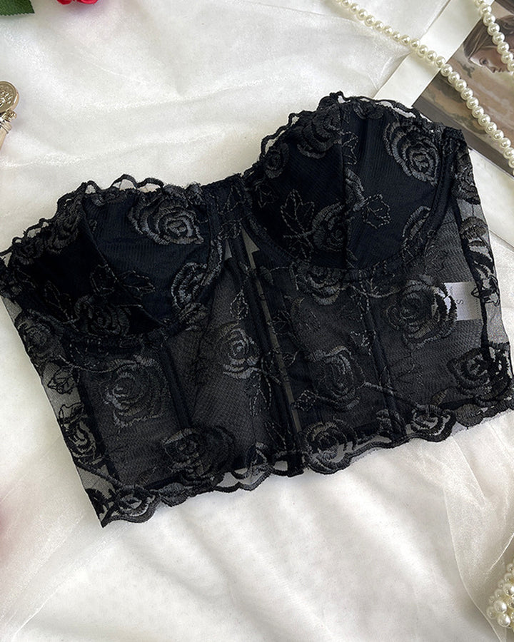 Sexy Flower Lace Mesh Herringbone Tube Top