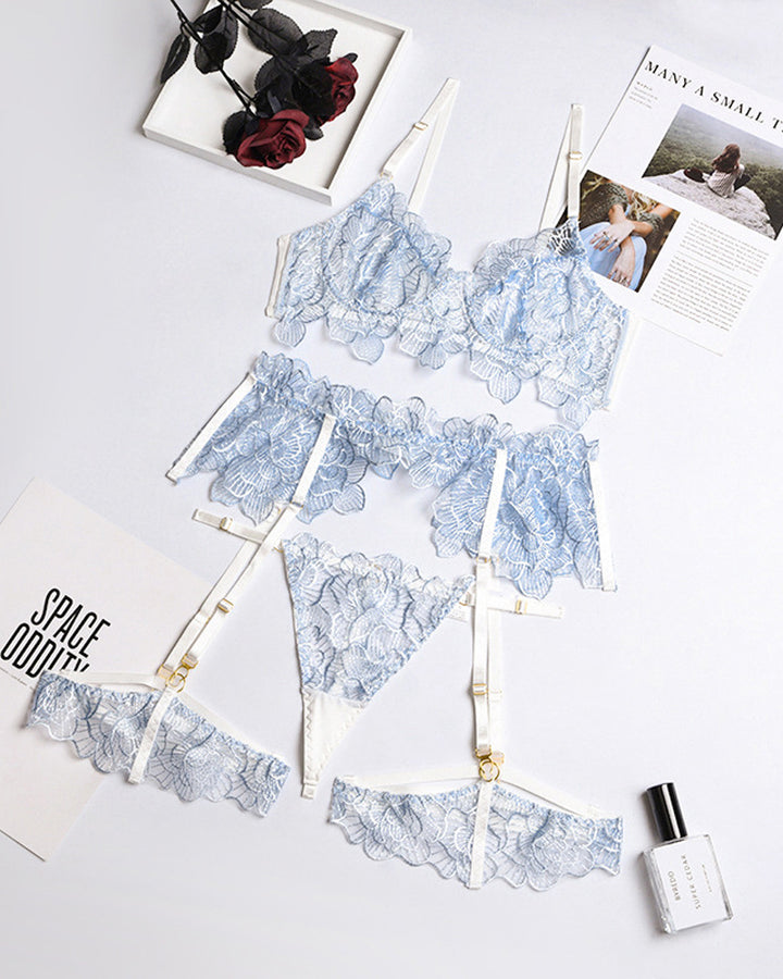 Indulge in delicate seduction with this floral lace and mesh lingerie set. Featuring intricate lace floral appliqués artfully spliced with soft transparent mesh, this set creates a captivating play of texture and tease. The seamless blend of coverage and reveal makes it perfect for romantic evenings or intimate moments.