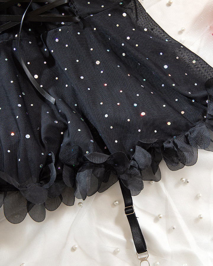 Sexy French-style Lace Mesh Sequined Lingerie Set