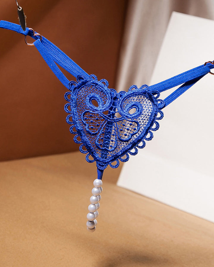 Sexy Heart-Shaped Lace Flower Pearl Embellished Thong