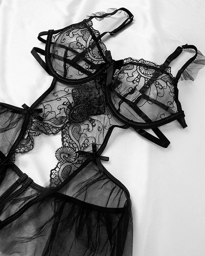 Sheer Lace Mesh: Delicate yet daring coverage for a tantalizing look.
