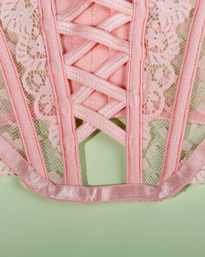 Playful Elegance: Heart-shaped buckle accents on delicate see-through lace