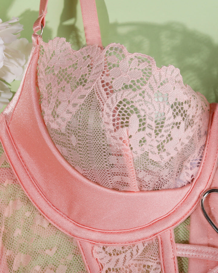 Sexy Lace See-Through Heart-Shaped Buckle Lingerie Set
