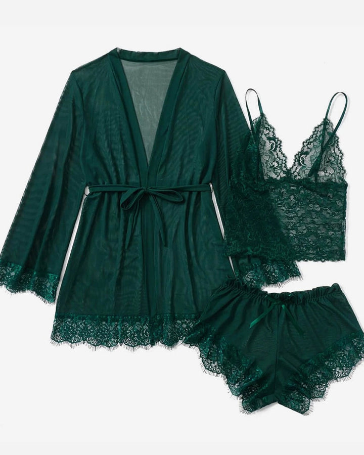 Sexy Lace Tulle Pajamas Three-piece Set