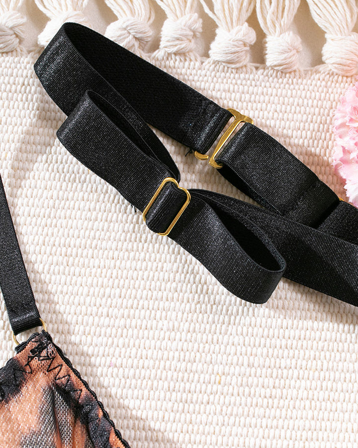 Sexy Leopard Push-Up Bra & Thong 6-Piece Lingerie Set
