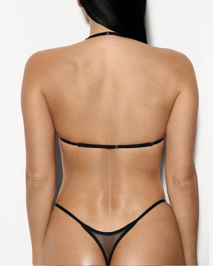 This exquisitely daring piece is designed for the fearless and fashionable, blending sensual sheer mesh with strategic hollow-cut details for an unforgettable silhouette.