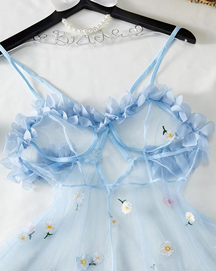 Sexy See-Through 3D Flower Lace Mesh Suspender Dress