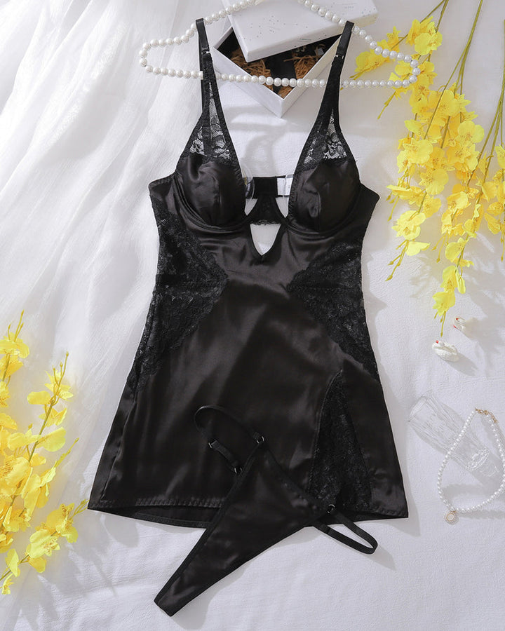 Sexy Slim-fitting Erotic Hollow Lace Splicing Nightdress