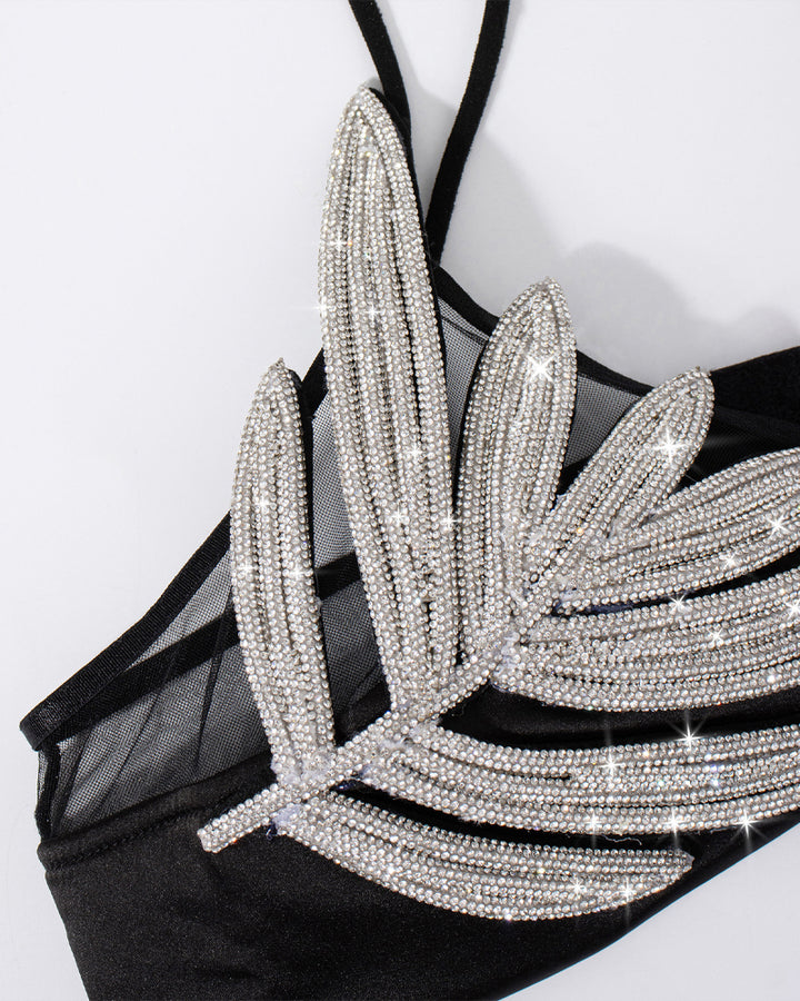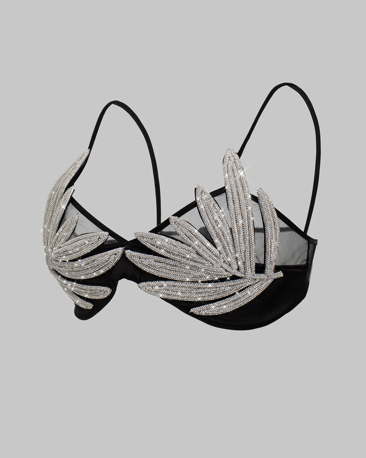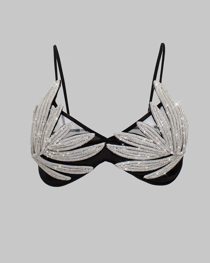 Silver Rhinestone Sexy Mesh Backless Camisole Bra