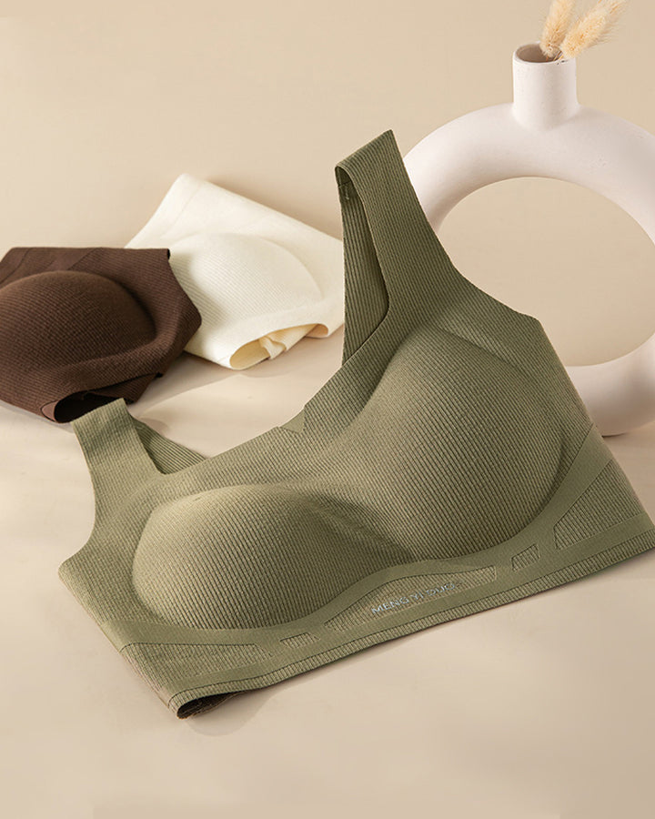 Solid Color No-Wire Seamless Push-Up Casual Vest Bra