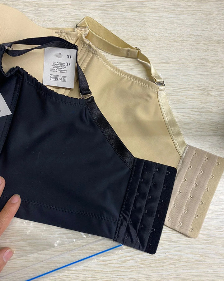 Solid Color Shaping Push-Up Bra With 6-Pin Buckle