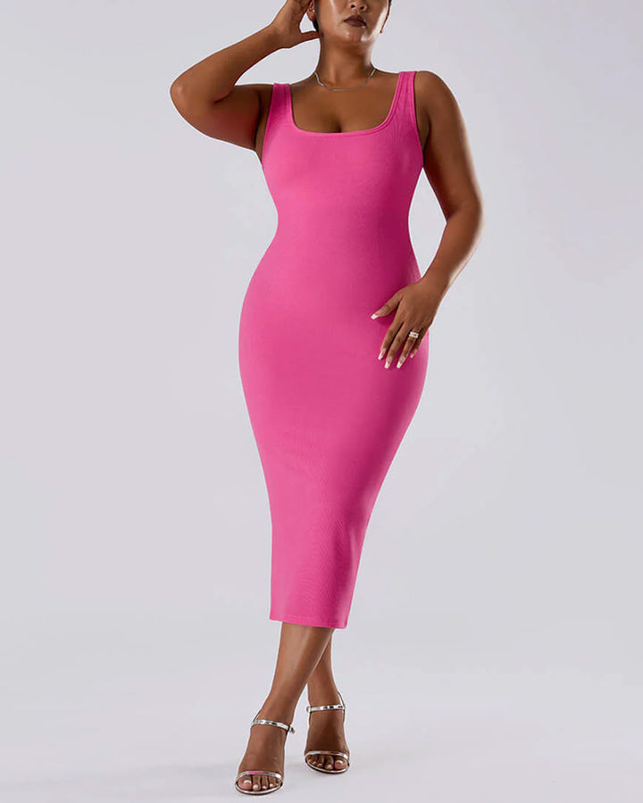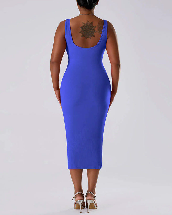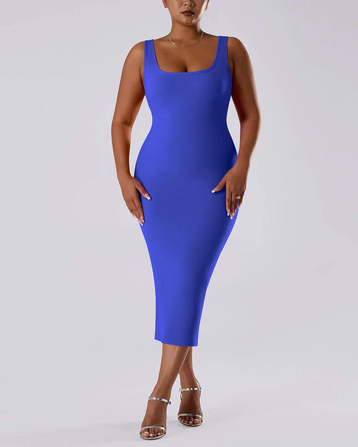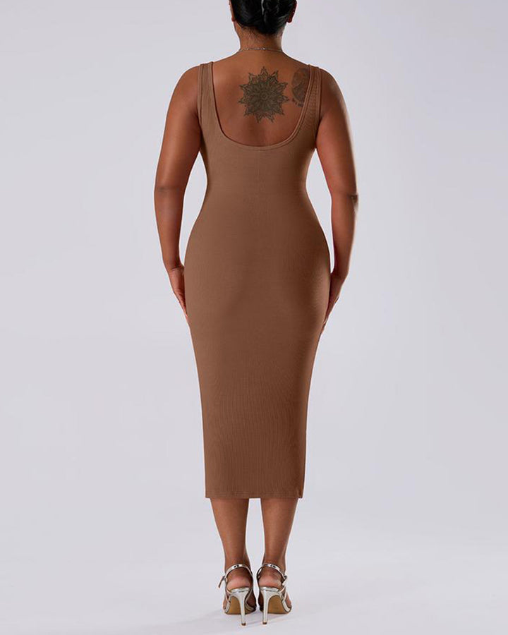 Solid Color Sleeveless Waist and Hip Lifting Long Dress With Built In Shapewear