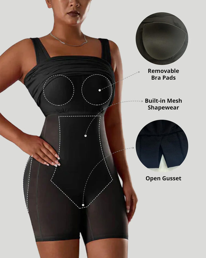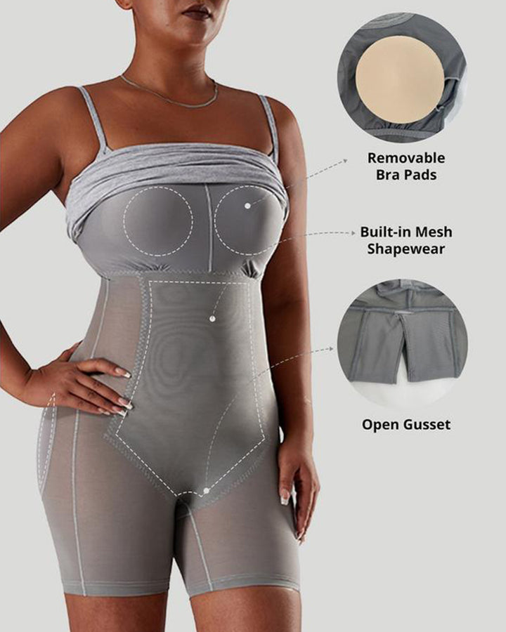 ✔ Built-In Shapewear – Seamless inner mesh provides full-body sculpting for a smooth, streamlined look.