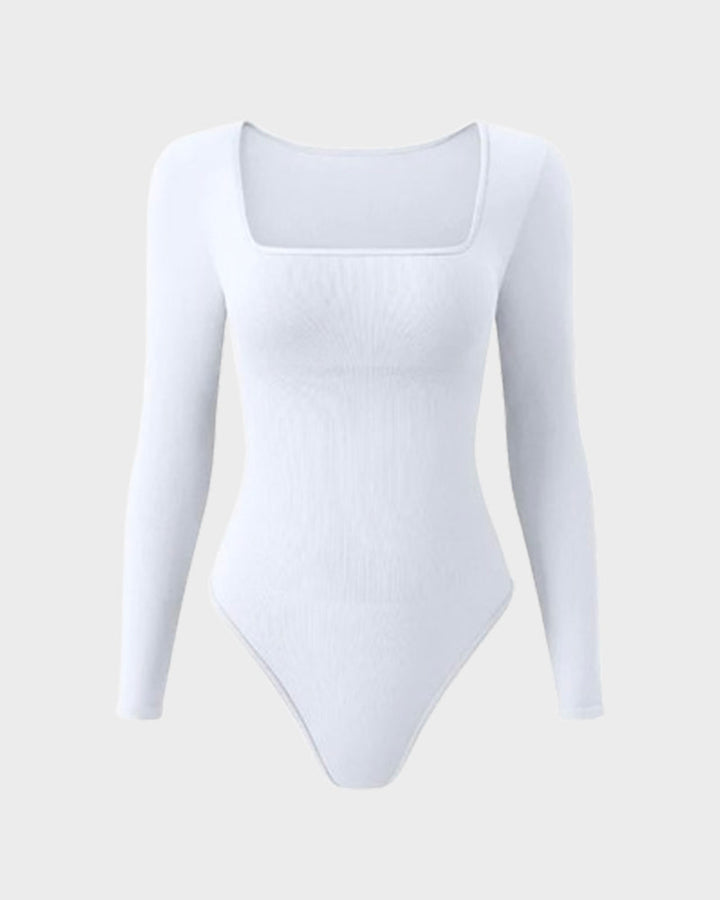 • Sexy Ribbed Square Neck Long Sleeve Bodysuits,long sleeve