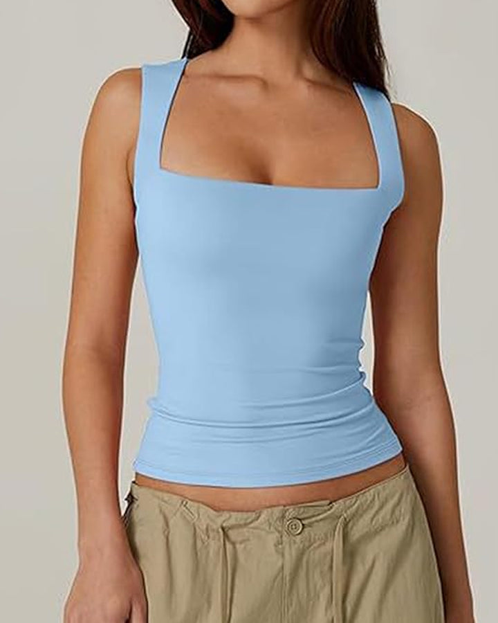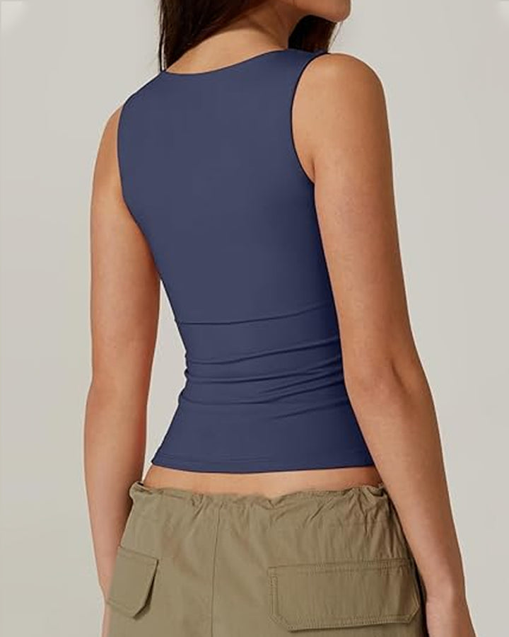 Square Neck Sleeveless Double-layer Tight Seamless Stretch Vest