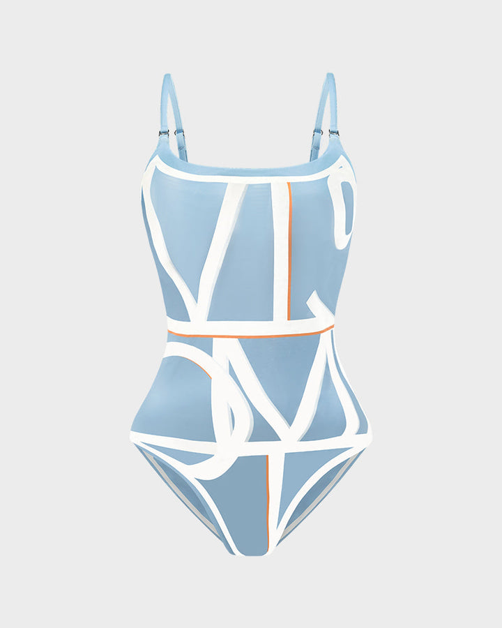 Trendy Reversible Letter Print One-Piece Swimsuit