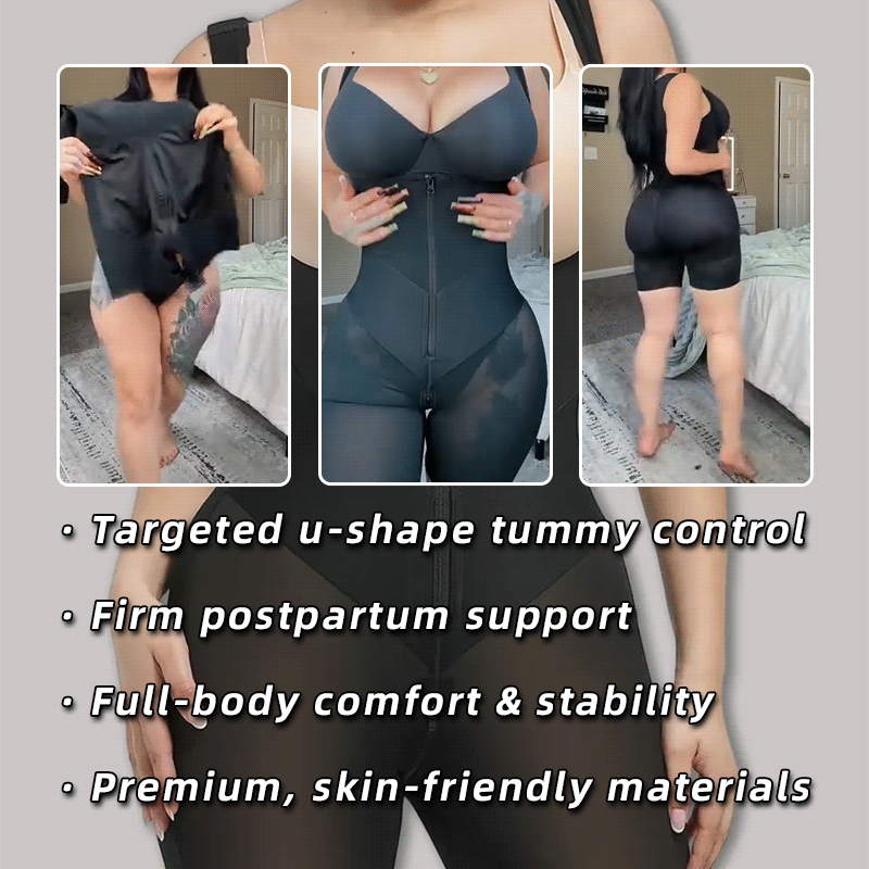 Specially designed for postpartum recovery, this bodysuit combines targeted compression with all-day comfort. The U-shaped front panel flattens the abdomen without restricting the torso, while the hip-lifting design enhances your curves for a confident, sculpted silhouette. Ideal for new moms seeking gentle yet effective support.