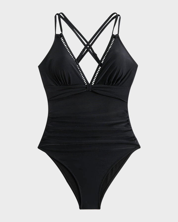 Featuring hollow trim details, this swimsuit offers a unique and trendy look, adding a modern twist to a classic design. -