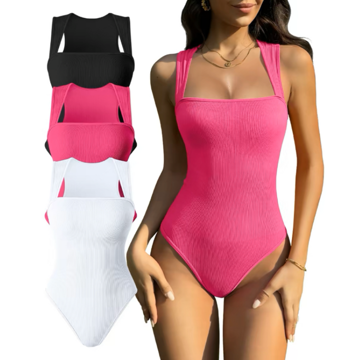 Get perfect body-hugging shape and breathability with the Ribbed Strappy Square Neck Bodysuits. Its whisper-soft and seamless construction make this sculpting piece essential for enhancing your body's natural shape.