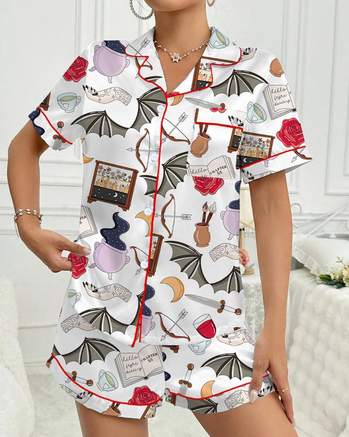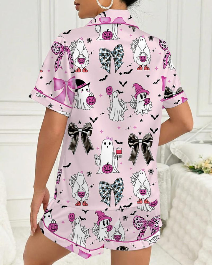 Women's Halloween Printed Casual Short Sleeve Top & Shorts Pajama Set