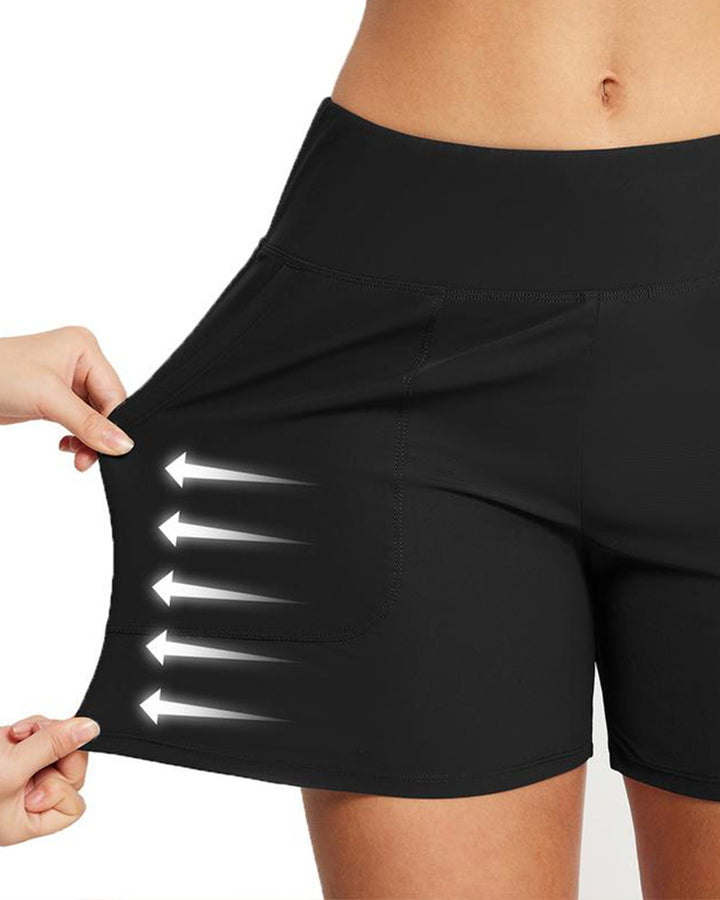 Women's High Waist Belly Control Pocket Beach Sports Shorts