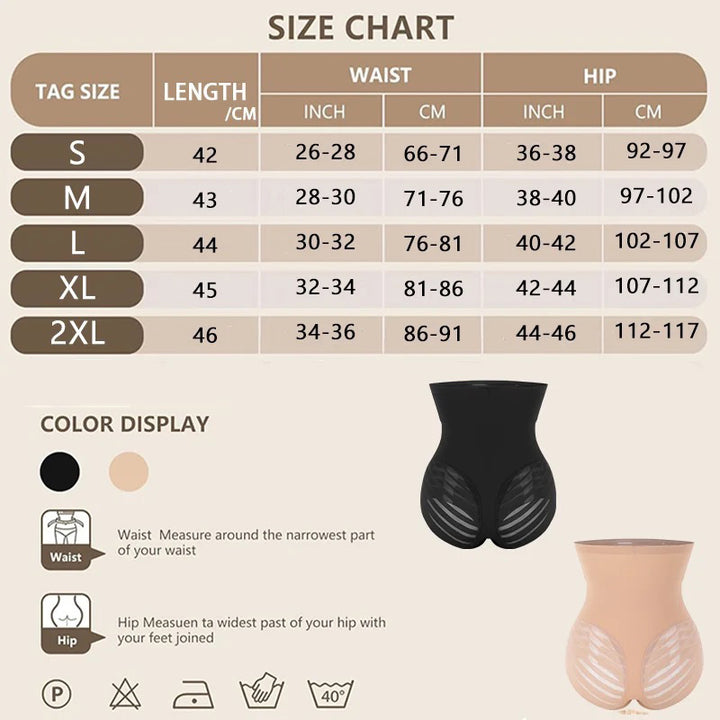For best results, measure your natural waist and hips; size down for extra firm control.