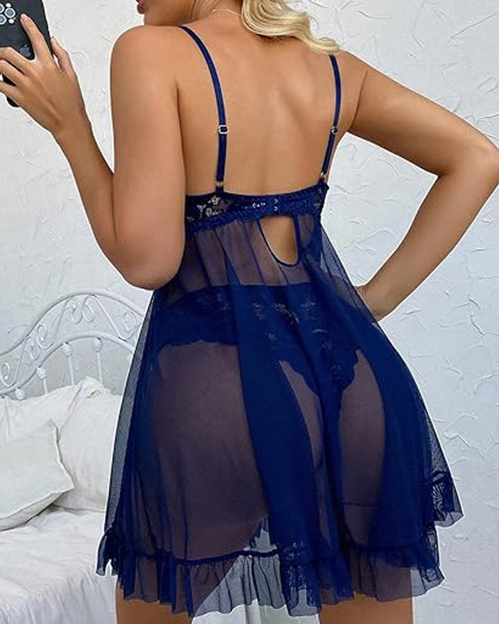 Women's Lace Sexy Ruffle Suspender Nightdress & Panty Set