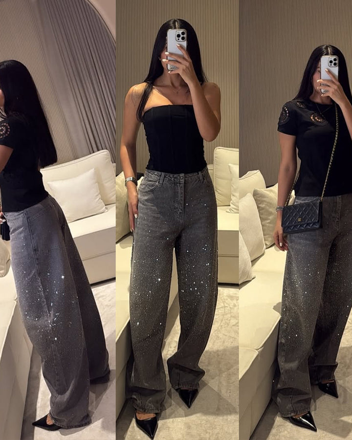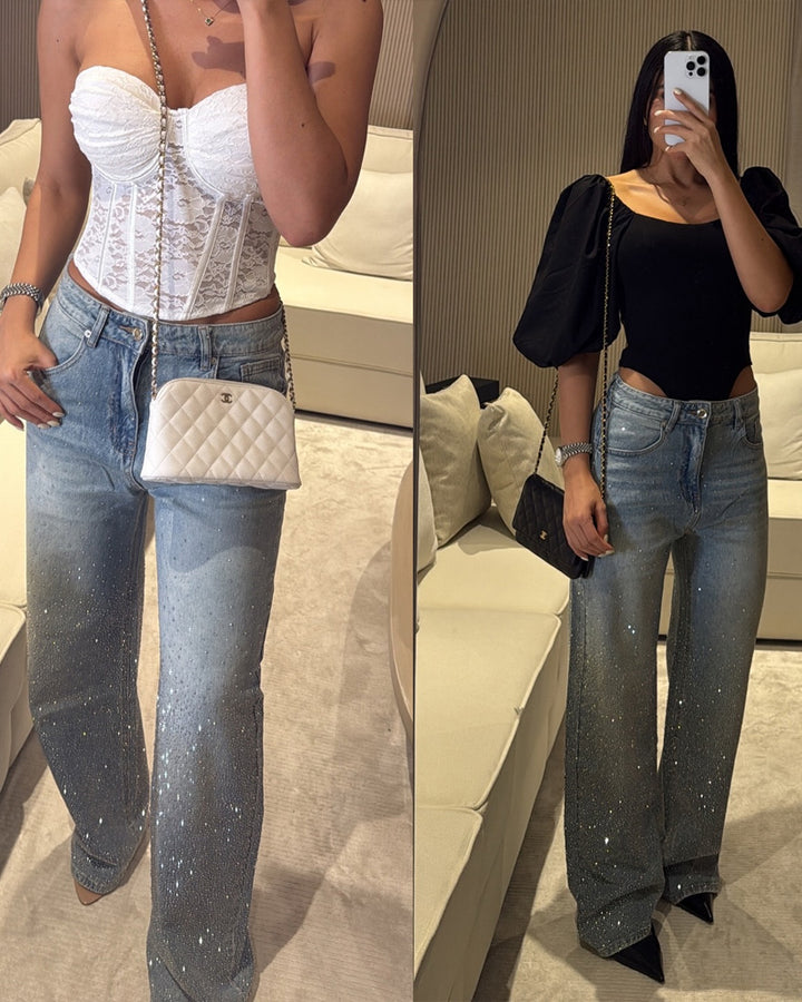 Upgrade your wardrobe with these must-have rhinestone jeans—order yours today!