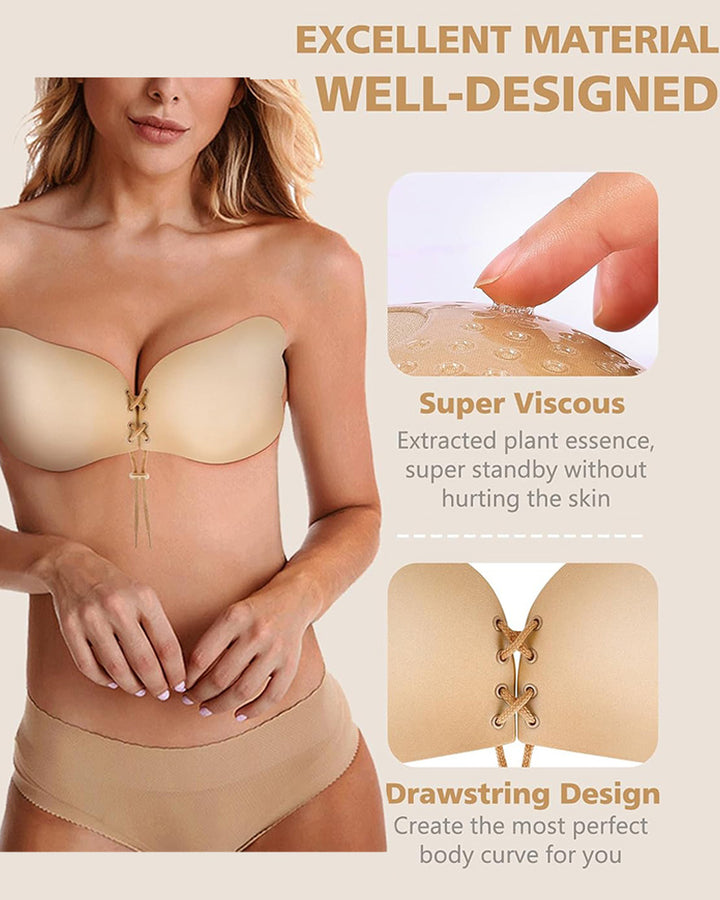 Experience ultimate comfort and support with our Women's Strapless Drawstring Silicone Wired Stick-On Bra, designed to enhance your natural shape while staying invisible under any outfit—perfect for a confident, seamless look!