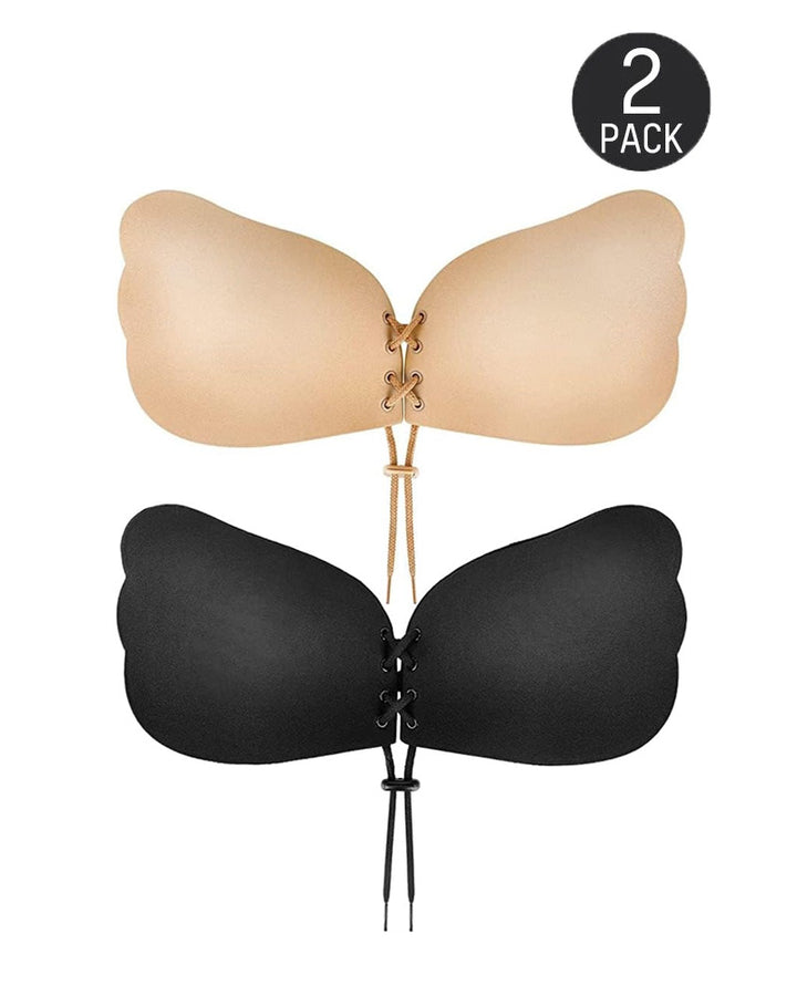 New strapless sticker bra, backless. The strapless, backless sticker bra helps lift your breasts and keep them in a good position to prevent sagging. With just a gentle pull, it gives you a full and sexy cleavage. The lace-up design enhances your breasts, making them look fuller, more beautiful, and sexier.