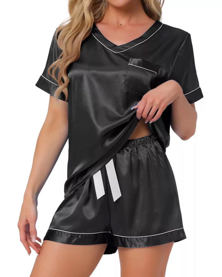 Women's Summer V-Neck Short Sleeve Soft Ice Silk Pajama Set
