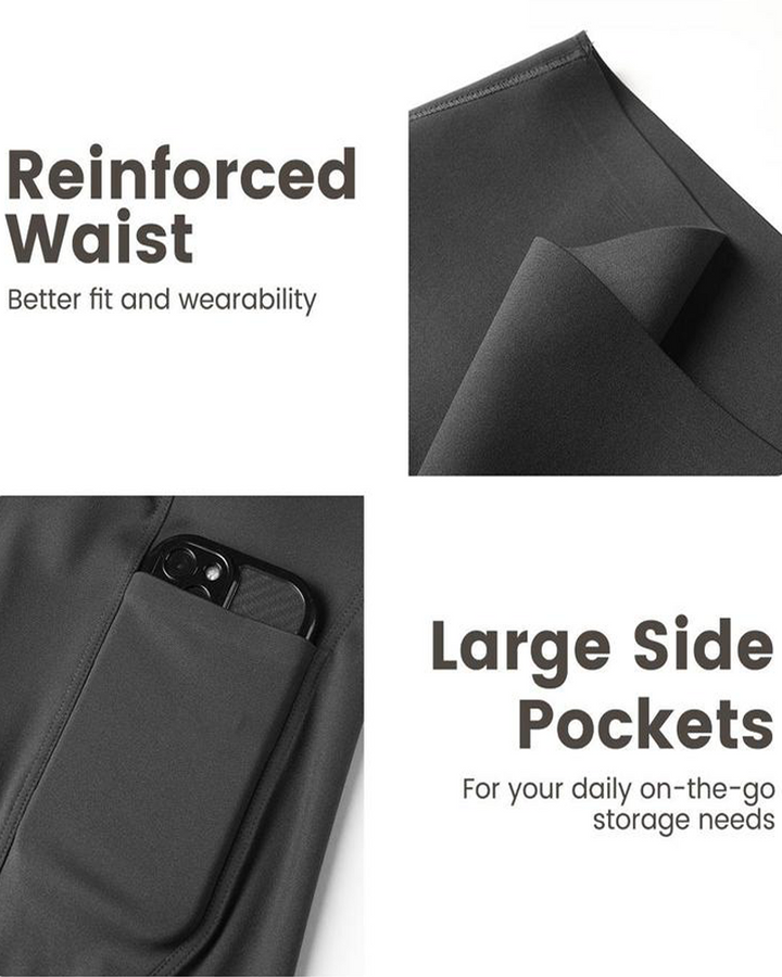 Elastic Waistband with Side Pockets – No more digging or rolling. The wide, supportive waistband stays in place, while convenient side pockets hold essentials like keys or cards.