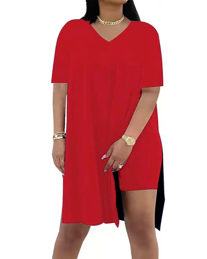 ✔ Trendy V-Neck Loose Top – Relaxed fit with a flattering side slit for a casual yet put-together look.